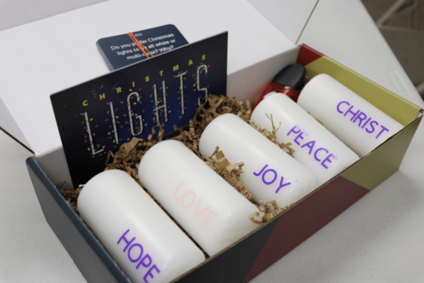 After prayer and reflection, we felt God leading us to use this year’s box as a way to teach about Advent and the traditional lighting of Advent candles in both our Traditional and Modern services. So we’ll be going on a journey together: exploring the Advent candles and what they mean and symbolize in our faith life.